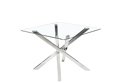 Ahoc Modern Glass Dining Table Square Chrome Cross Leg Furniture