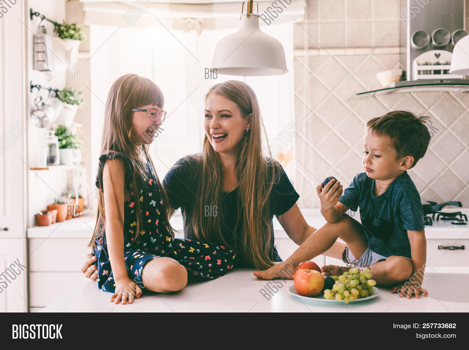 Mom Her Two Children Image Photo Free Trial Bigstock