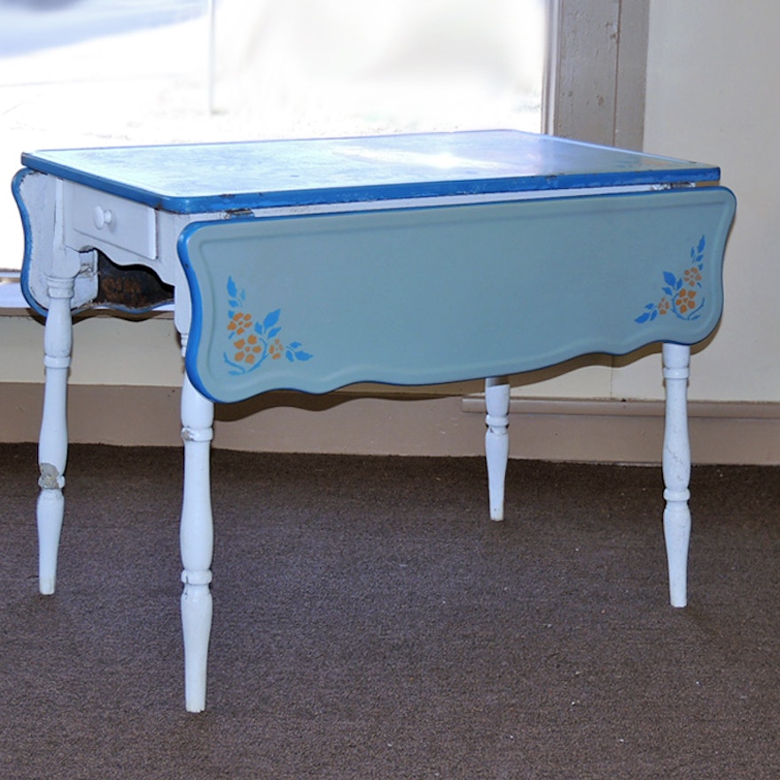 Vintage Enamel Aluminum Top Drop Leaf Table Ebth