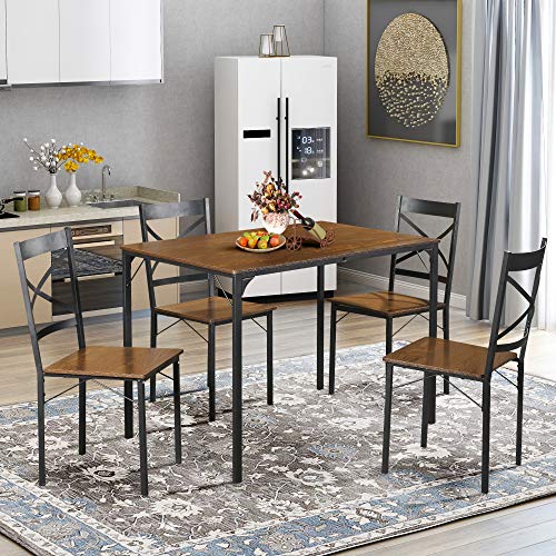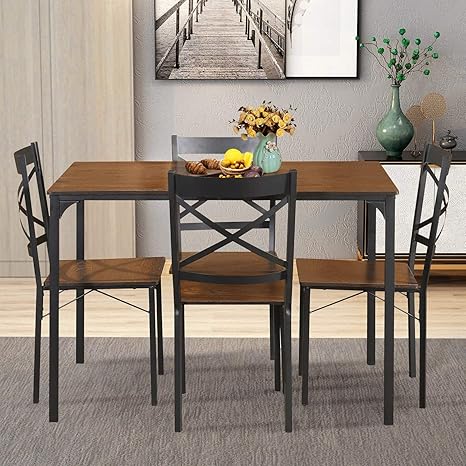 Tangkula 5 Pieces Dining Table And Chairs Set Brown Vintage Retro